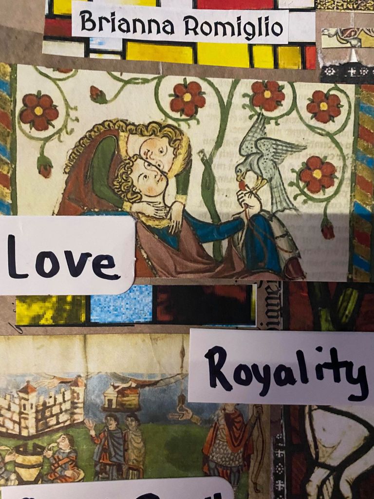 The video above directly relates to my “unessay” that is pictured below. I watched Hank Green’s crash course on the subject. While watching this video, I recorded some buzz words down that would give me an overall sense of the time period. Then I wanted to get creative so I made a picture collage of old paper, medieval paintings and stained glass for the background. I wrote out the buzzwords and glued them to the collage so I would have inspiration as I continued ahead with researching and writing. These words include religion, chivalry, famine, hundred years war, black death, starvation, etc. I am very proud of the visual aspect I was able to create for this project