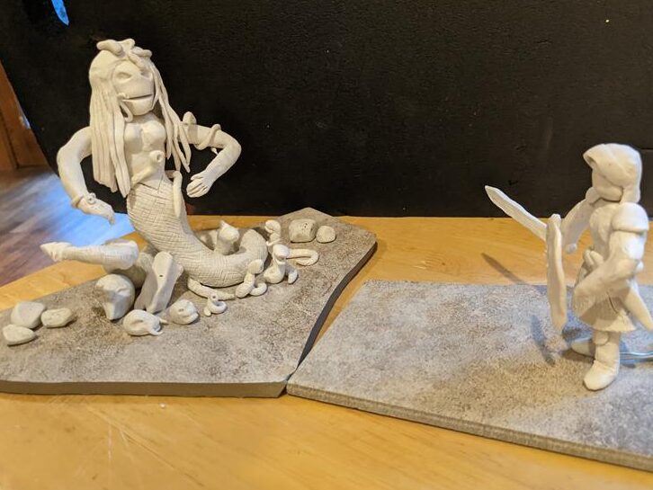 Like last time, I decided to do an unessay. While reading the Faerie Queene, my mind latched onto the creatures of the story as they seemed far more interesting to me than the others of the story such as the knight. Not to be mistaken as complete disinterest in the story, merely just the lack of interest in human characters when in opposition to mythical beings or animals. I like lamias, like Errour technically is, as they interest me from the times that I read about them or saw films with characters like Medusa, who, while not the same as Errour, is half woman and half snake. I wanted to make something more physical than what I did for the first project and chose to use clay as my medium of creation.