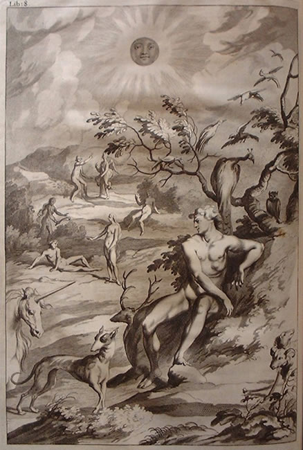 For setting, I wanted strong and authentic imagery. I needed art. William Blake was my first idea, as he’s known for his illustrations of Paradise Lost, but that didn’t feel, for lack of a better term, faithful enough. After some perusing, I found the original cover engravings for Paradise Lost, by Michael Burghers– now that’s authentic! And thanks to those covers I could make lines like, “where rifts dissect the flames / of whirling Ether, purely space. A gloom / so drained… Pandemonium had filled / its bowels of infinite bedrock” or “a boundless light / so rightly warm, fantastical vistas / of folding hills, lagoons beyond perception, / and unicorns descending from a good hover.”