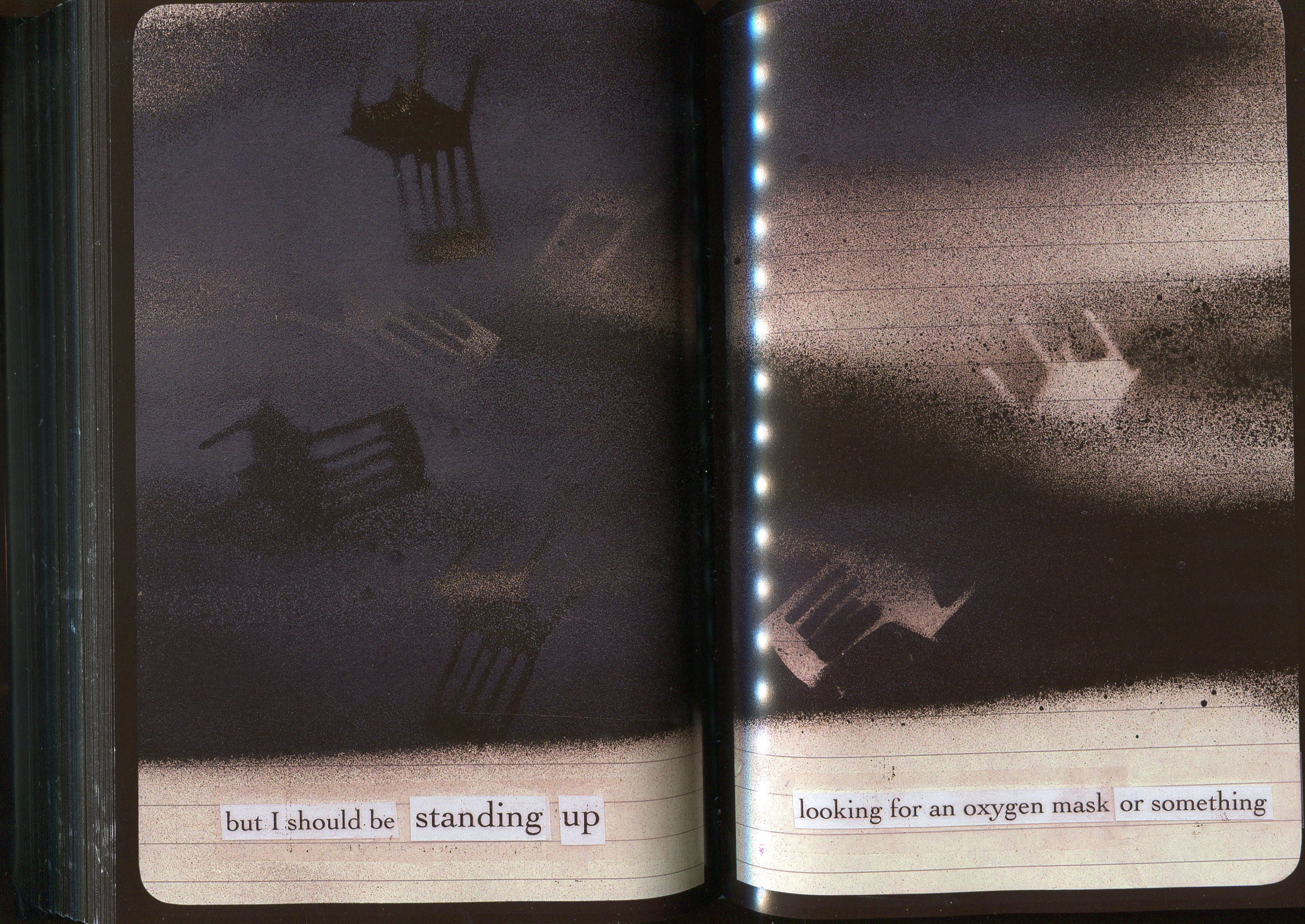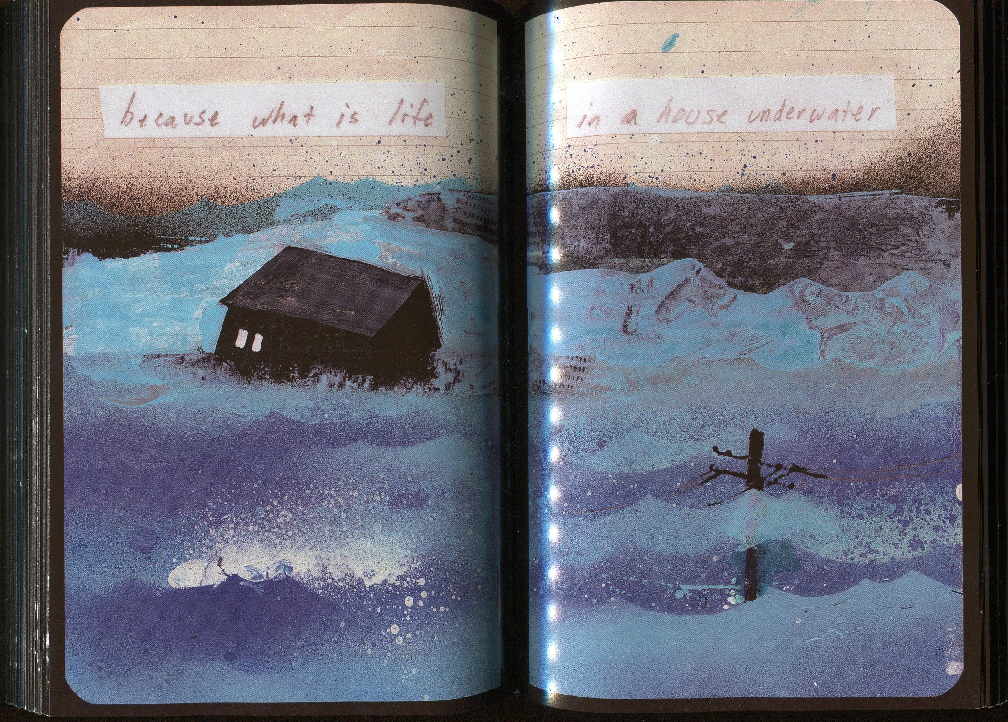 “but I should be standing up/ looking for an oxygen mask or something/ or searching for a sign/ or a sigh/ or something for my lungs/ to l u n g e toward/ because what is life/ in a house underwater”