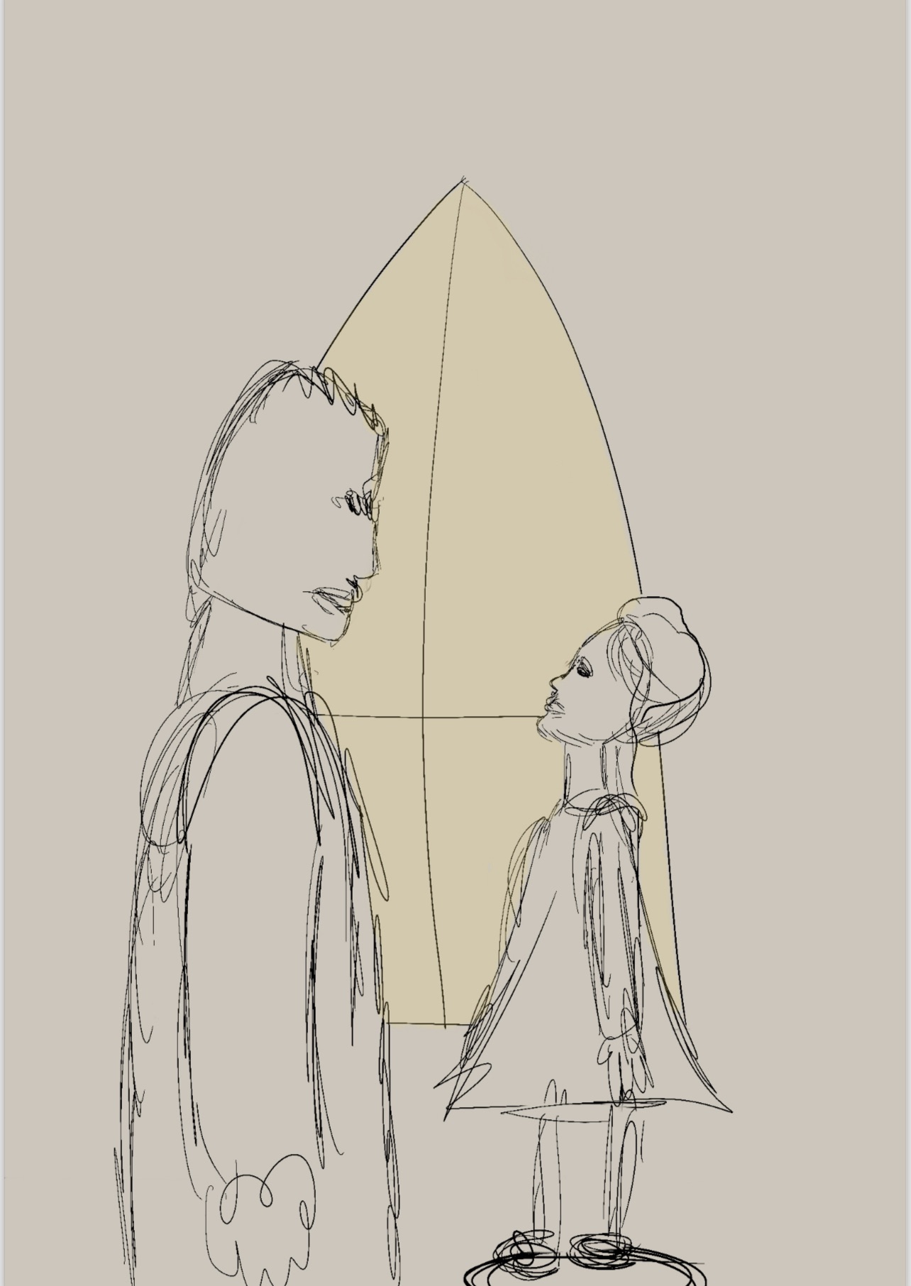 Once I had done the sketch, I moved onto working on the draft for the piece. The draft did not have much done to it because once I got the general set up and details of Jane and the creature down, I began working on the final product of it.