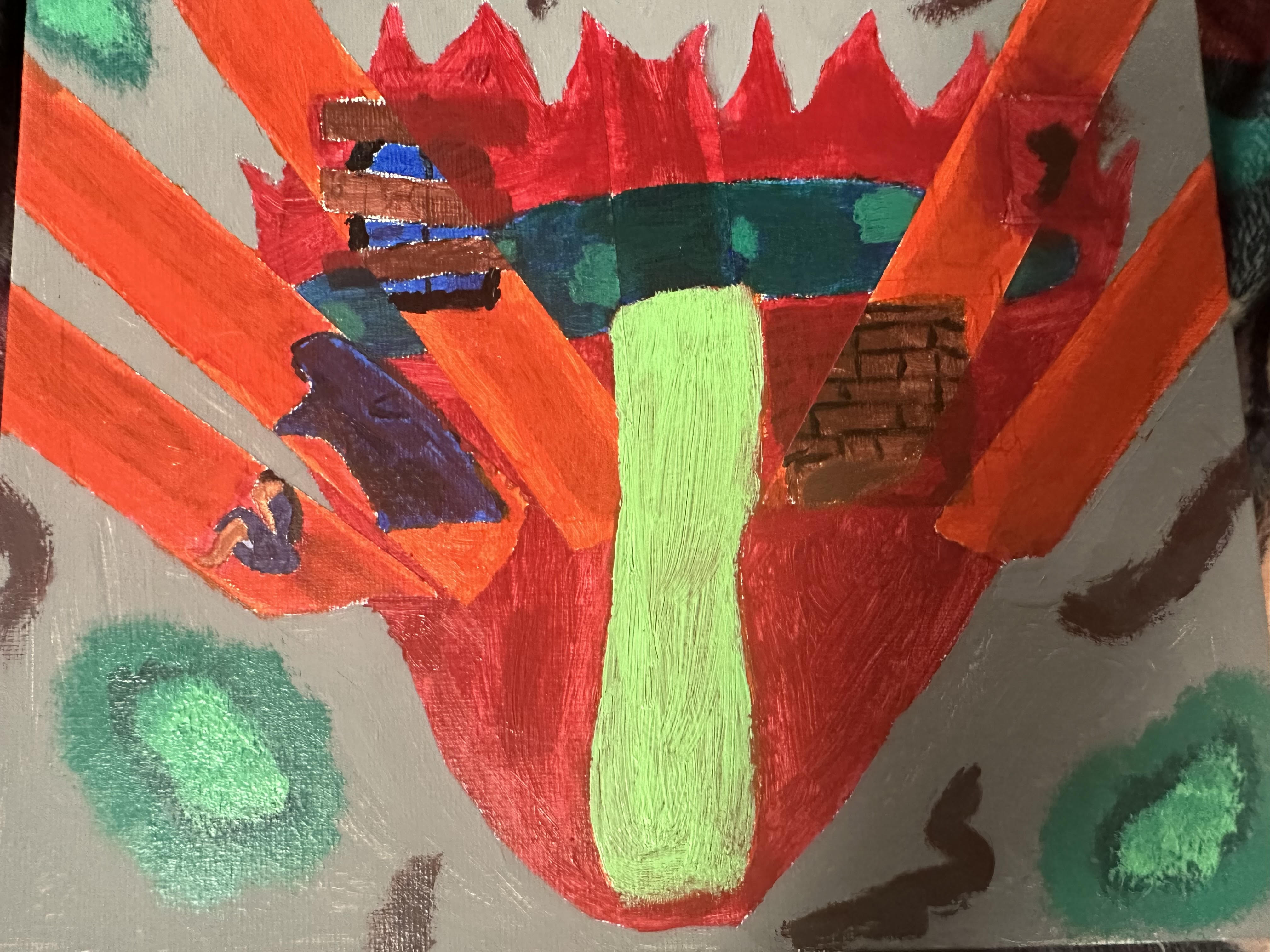 I decided to make a painting of the mushroom from Mexican Gothic burning down with strips of Jane Eyre and her trauma underneath as a way to show that everyone handles/reacts to trauma differently no matter what gender they are. As a future educator I think that It is of utmost importance that we make a society where children/adults can deal with trauma in ways that they want to. Men shouldn’t have to hide their emotions or problems away like Mr. Rochester did, and not all women become super reliant on others like Jane Eyre did. In conclusion, I believe that we as a society need to create more stories like Mexican Gothic that break away from gender norms for a better future for all!