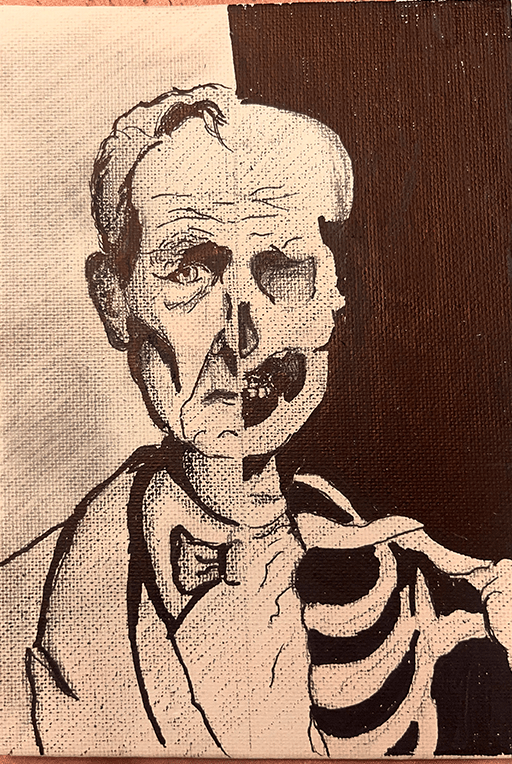 (If I had more artistic capabilities, I would have attempted to depict the bones in the ‘dead’ half as decrepit or shattered, but I tried to show it in the cracks, wrinkles, and shading.)